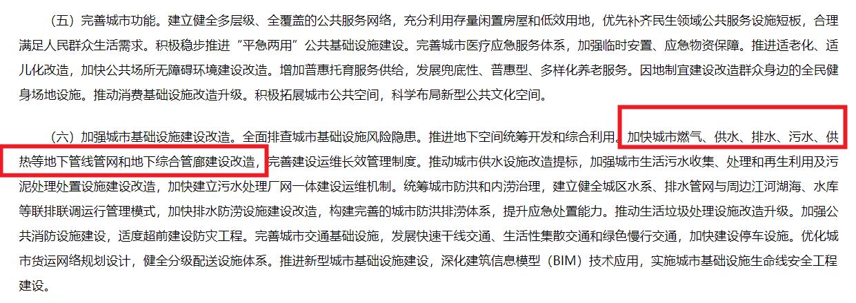 城市更新既肩負著改善民生福祉的核心使命,又承載著培育經濟新動能的戰略任務,國家高度重視城市更新及城市生命線的建設和安全。近日官方發布《關于持續推進城市更新行動的意見》中多次提及城市基礎設施的更新改造并明確提出全面排查城市基礎設施風險隱患。推進地下空間統籌開發和綜合利用。加快城市燃氣、供水、排水、污水、供熱等地下管線管網和地下綜合管廊建設改造,完善建設運維長效管理制度。